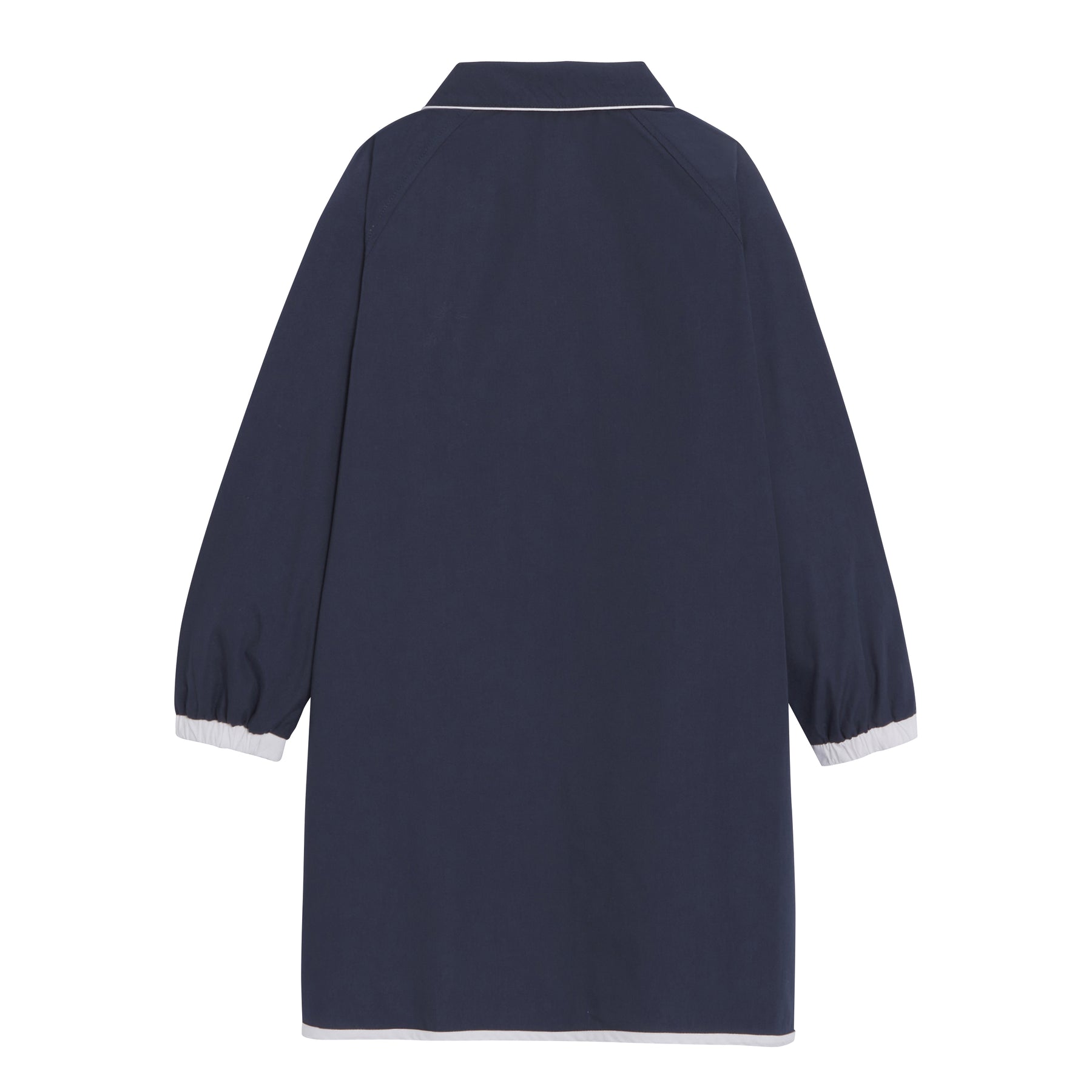 Our ALIX girls' school apron, with its Peter Pan collar, has a button placket at the front. The cuffs are elasticated. The two patch pockets at the front are reinforced to prevent tearing. The drawstring sewn inside the collar makes it easy to hang on a coat rack.